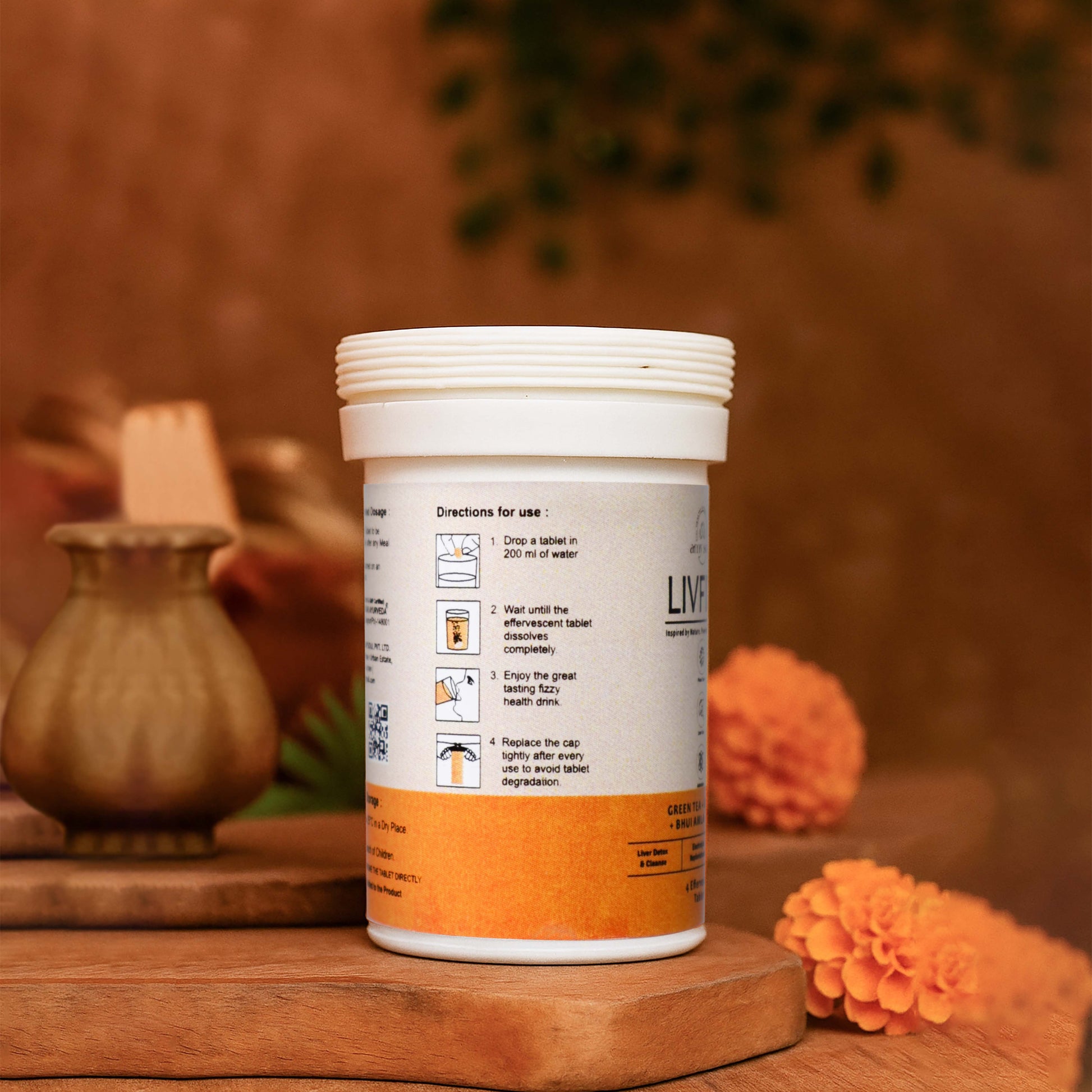 LivFizz is an Ayurvedic effervescent tablet designed to help relieve hangover symptoms, detox the liver, reduce bloating, and restore energy levels naturally.